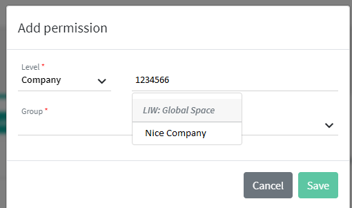 Level and Selection: You define here what the permission is to apply to. This can be either an entire workspace (including subordinate workspaces) or a company (including associated locations) or an individual location.
