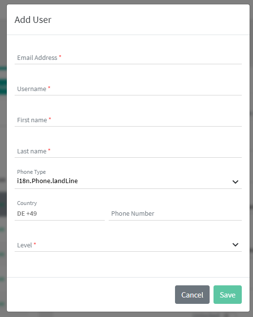 You can select whether the user belongs to a workspace, a company or a location via the "Level" field. The workspace, company or location is then selected via the Selection field When you have finished, confirm your entries with "Save". After the user has been created, he or she must be assigned permissions. You can find out how to do this in section 3.