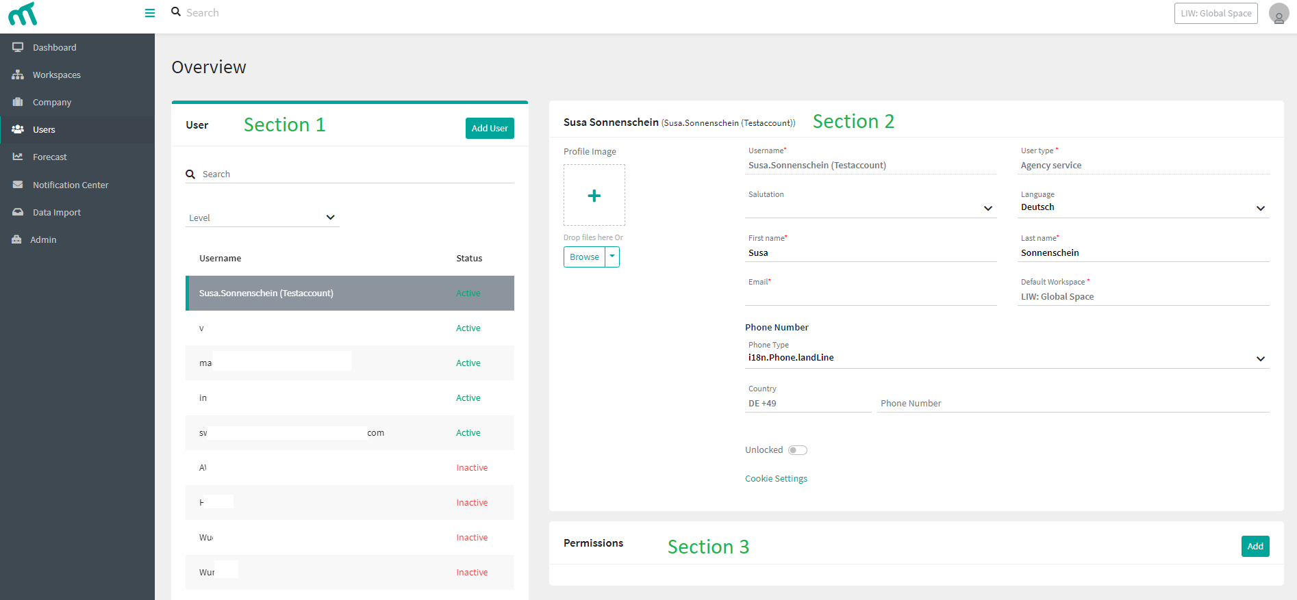 Users can basically be assigned to a workspace, a company or a location. This link is selected when the user is created and cannot be edited afterwards. In this way, you can decide to which "level" a user is assigned. If you want an individual customer to have access to his or her data, the assignment to the respective company makes sense. If you want to give a branch employee of your customer access to his data, the assignment to the corresponding location is the right choice. If you want to give an employee in your company access to all of his customers, the assignment to the work area would be the sensible variant.