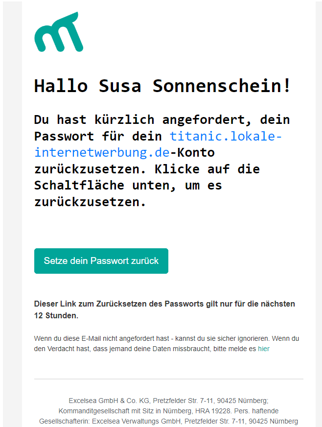 With this email, the user is requested to set the password for his account. To do this, click on the button "Reset your password".
