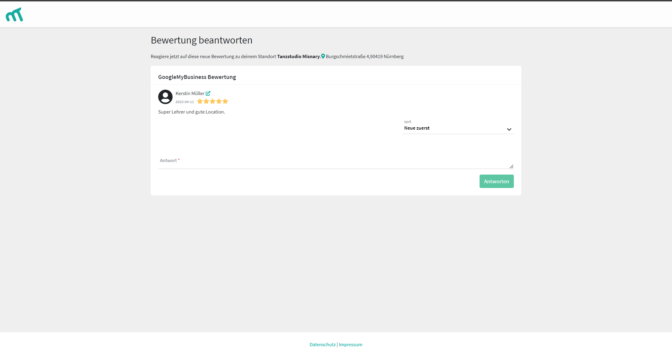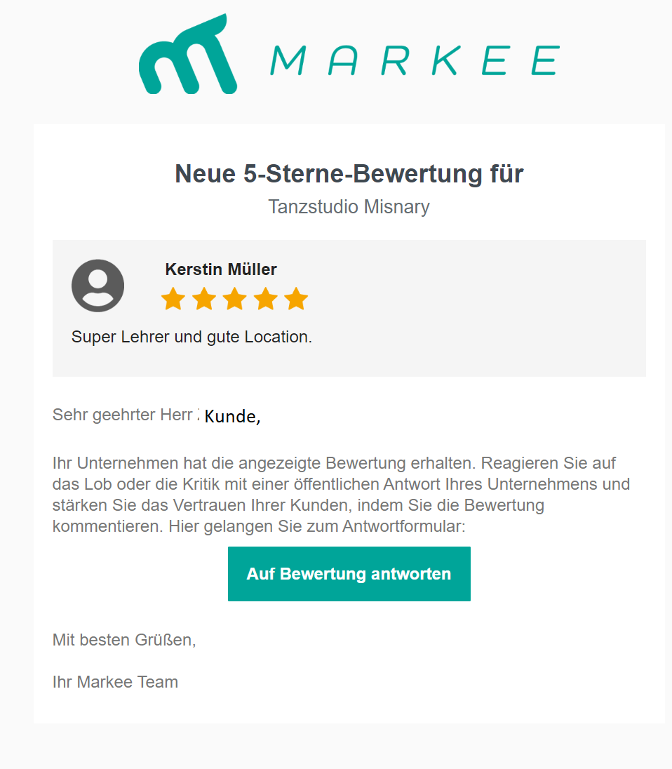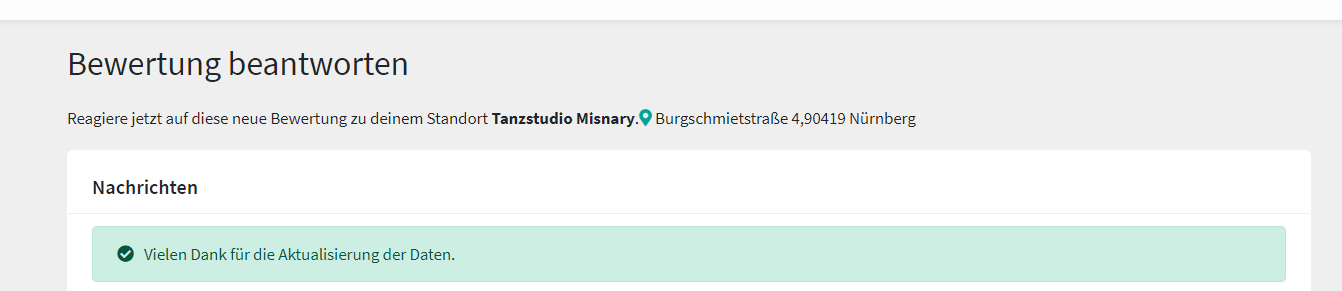 The customer (Contact for location) receives an email and is taken to the landingpage via a link. On this page, the customer has the opportunity to react (e.g. enter opening hours, respond to a rating) even if he himself does not have access to the Markee. The link loses its validity after the first call. This avoids duplicate and ambiguous entries.