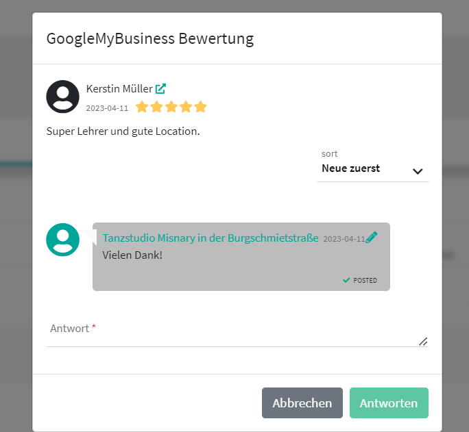- Response to received reviews (prerequisite: Review Response AddOn activated)