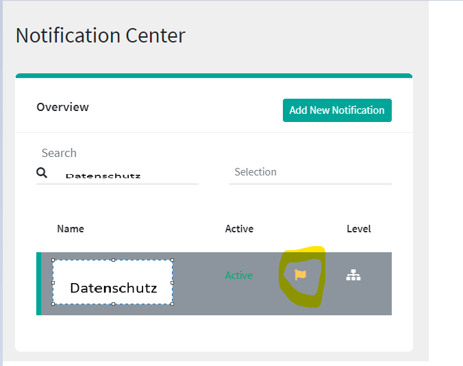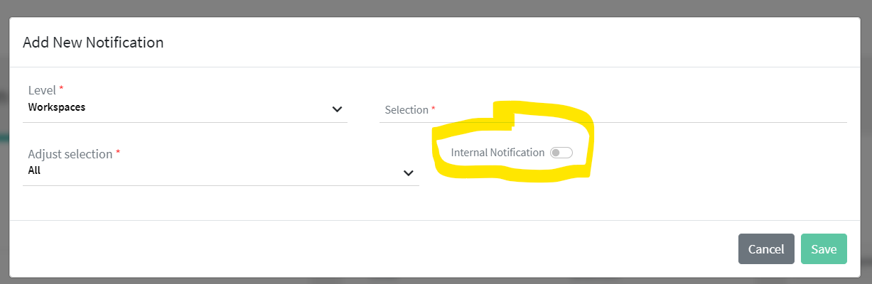 When creating the export, the notification must first be created as "internal" so that it can be sent. This is done when creating the notification by clicking on the slider "Internal notification".