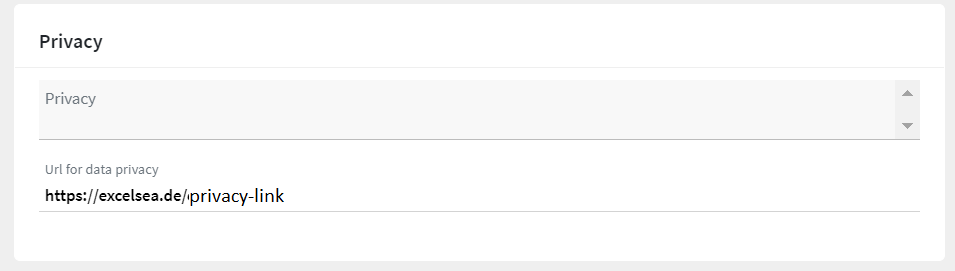 The link to the privacy policy can be entered in the "Privacy URL" field; alternatively, the privacy policy can also be entered in the "Privacy Policy" text field.