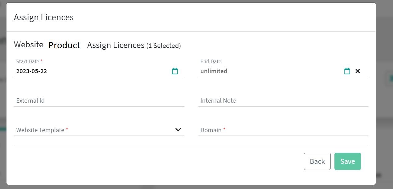 The specifics of assigning the licence are covered here in the article below. The template for the website must have been defined beforehand and deposited with us.