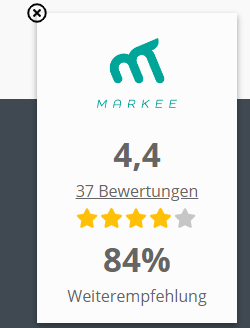 Using the website widgets, the "gadgets", Markee users have the possibility to display a certain selection of their data from Markee on an external website, including the logo. At the moment, the Review Widget is available. The widget is created by the support team and can be configured individually. Markee will then provide you with a custom Javascript code that you can copy and paste on the desired web page. This code does not change - even if something is changed in the configuration in Markee.